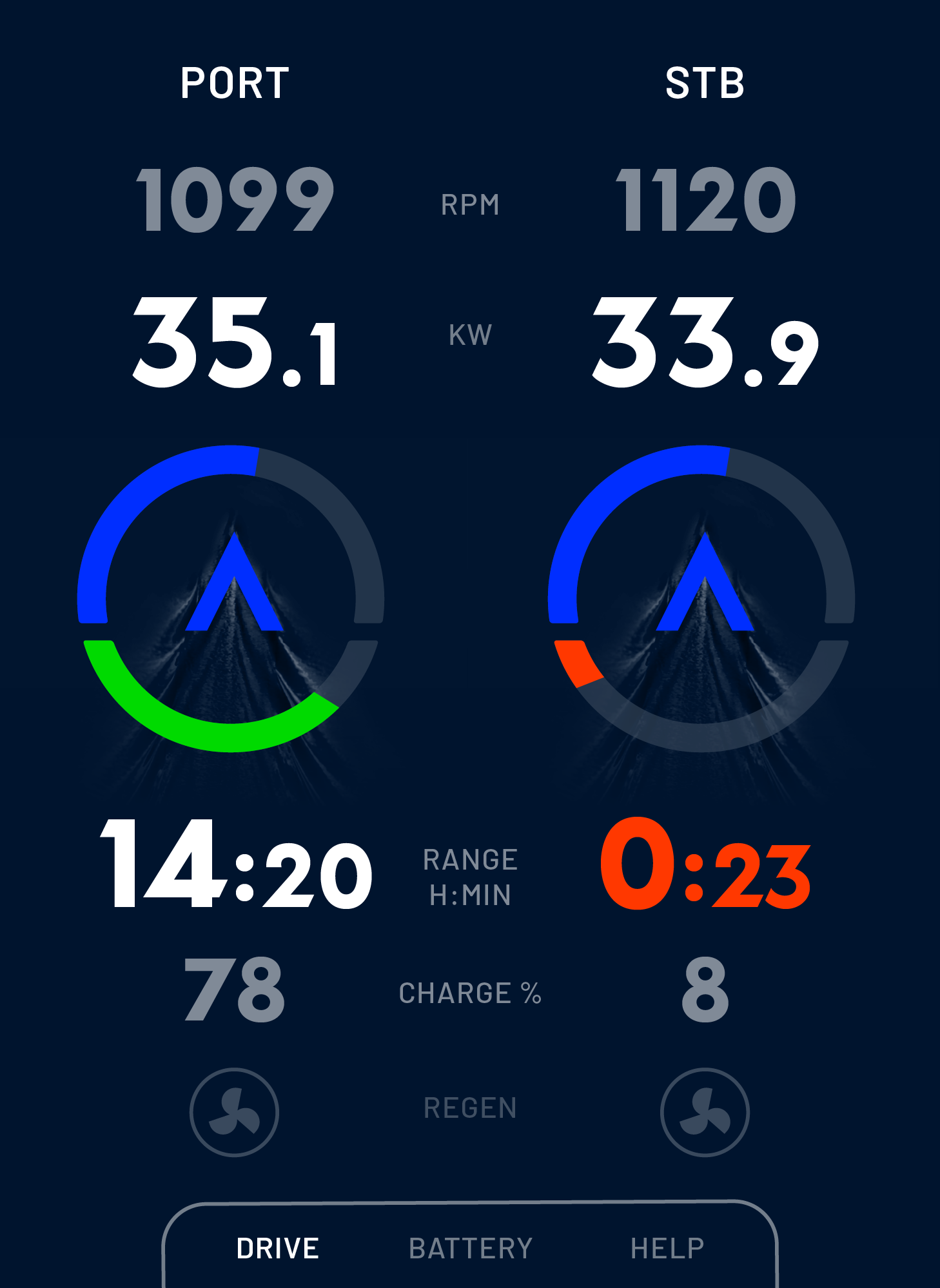 Second, the circumstances at sea can be challenging in terms of visibility. Lastly, the dashboard had to be able to accomodate also configurations with two motors instead of one.