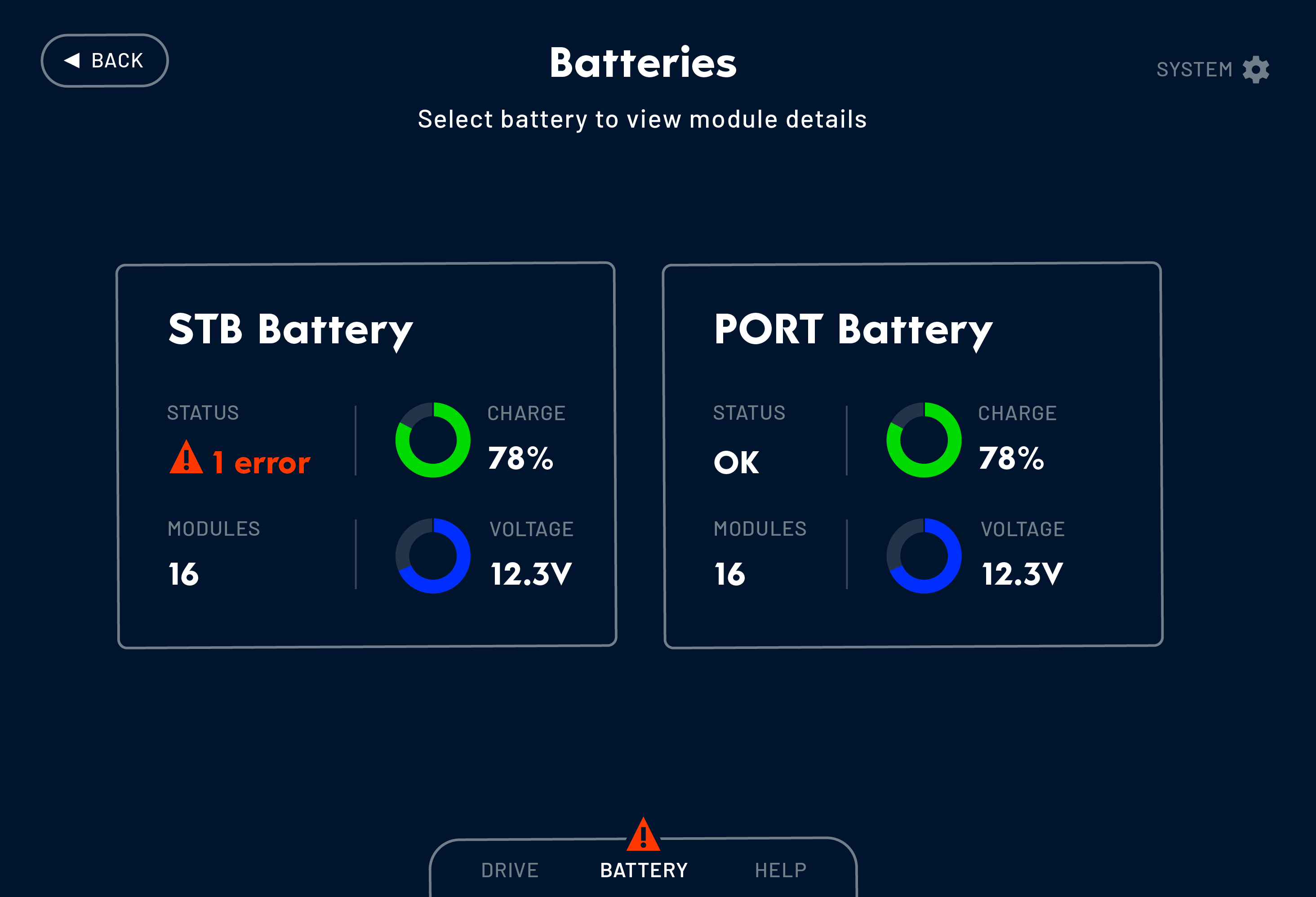 What was quite a straightforward design task was complicated by a few factors. First, the touchscreen is shared between other applications, such as a navigation plotter, and the Oceanvolt dashboard had to adapt to different available spaces.